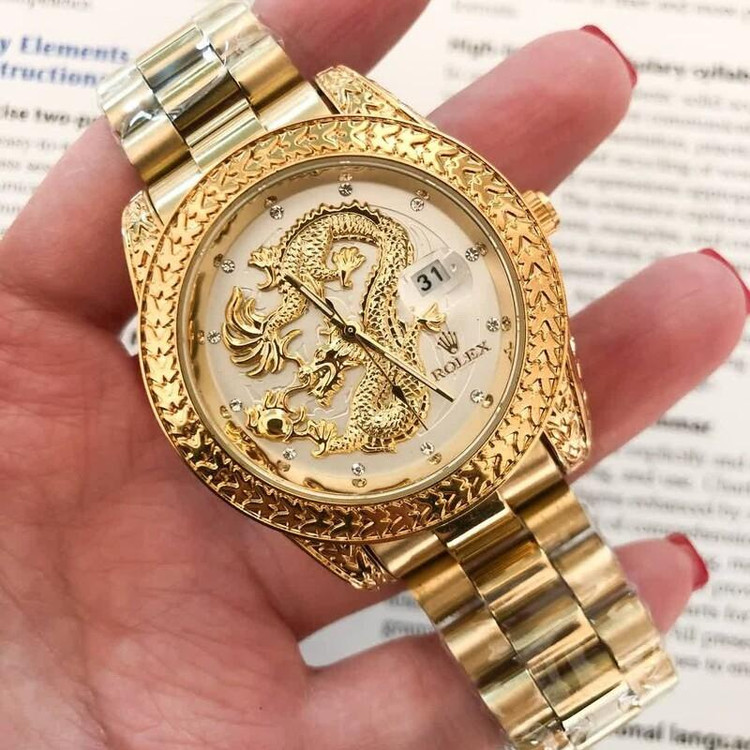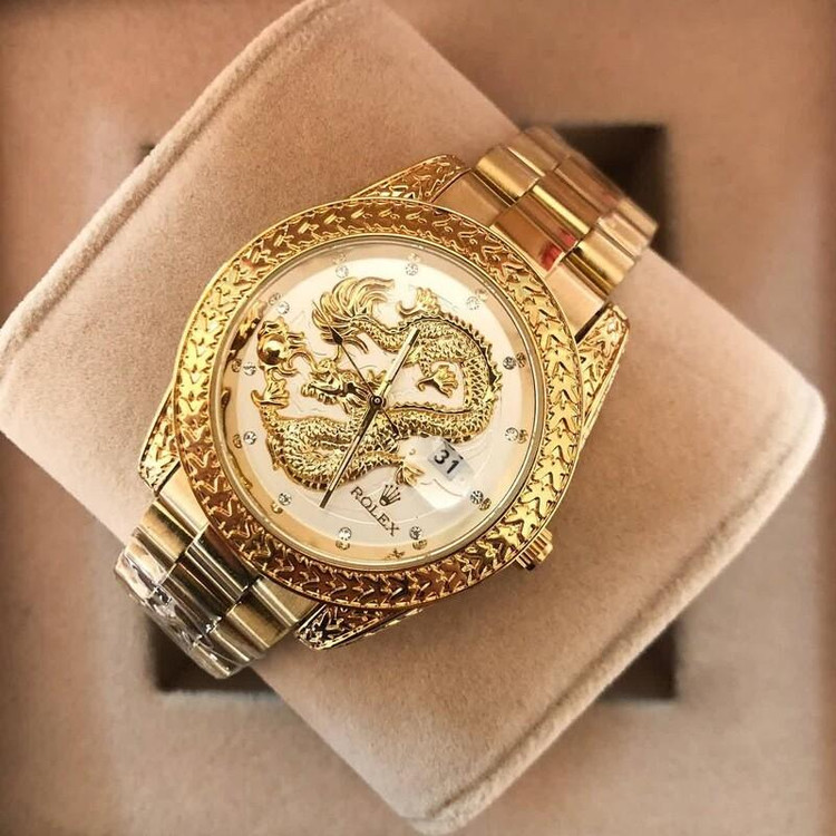 ساعت مچی مردانه رولکس دراگون باکیفیت بند استیل طلایی رنگ ثابت صفحه سفید 38میل ارسالرایگان