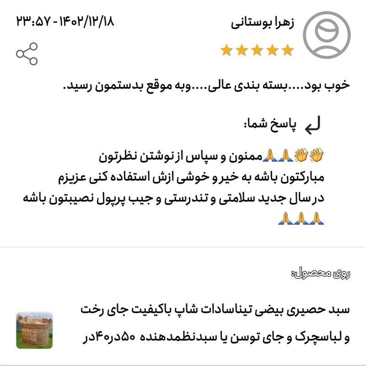 سبد حصیری سنتی جای توسن تاسادات شاپ باکیفیت جای رخت و لباسچرک و نظمدهنده 50در40در ارتفاع 40هزینه ارسال بامشتری