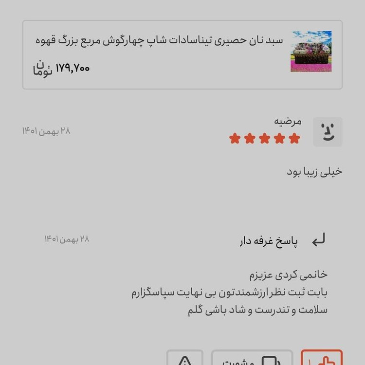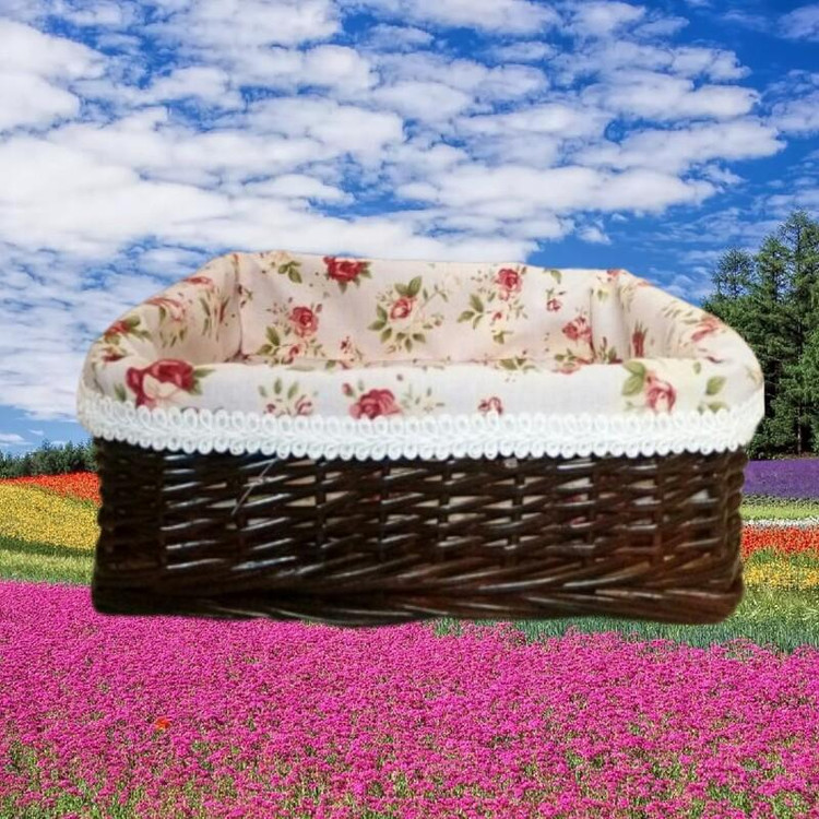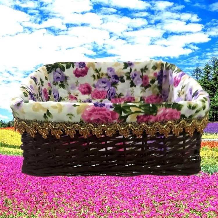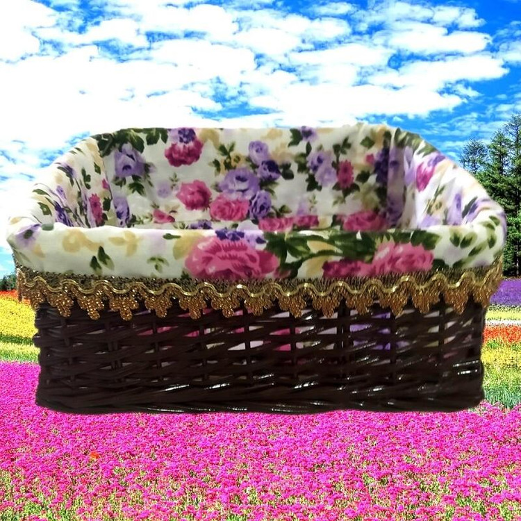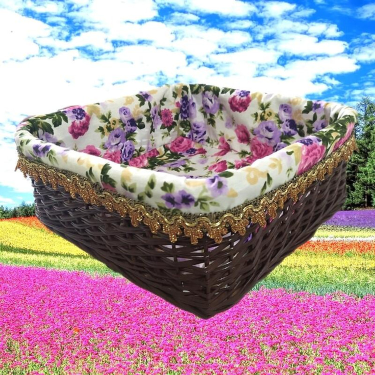 سبد نان حصیری تیناسادات شاپ چهارگوش مربع بزرگ قهوه ای پارچه دار