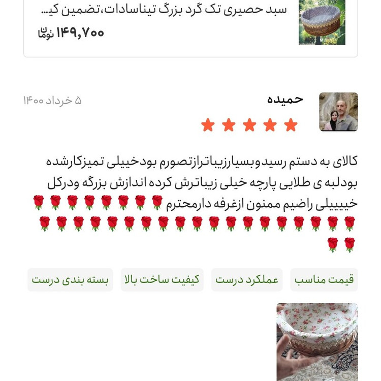 سبدحصیری نان تک گرد بزرگ تیناسادات تضمین کیفی صددرصدخودرنگ25درارتفاع10سانت 900g