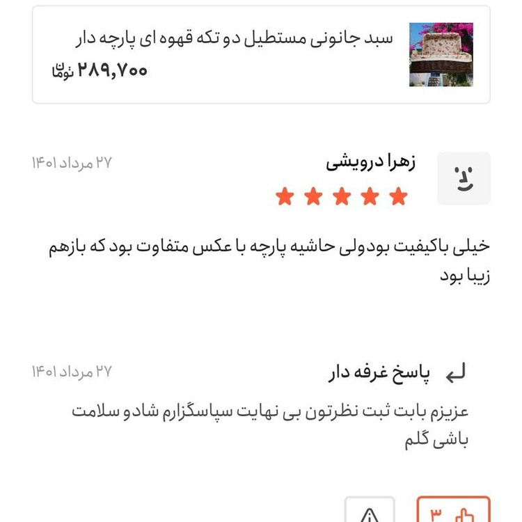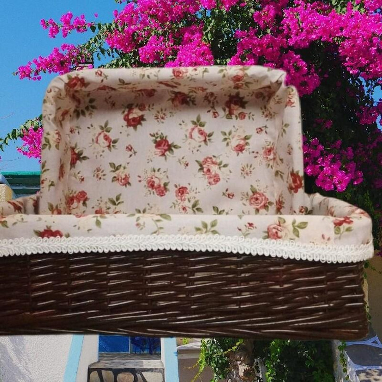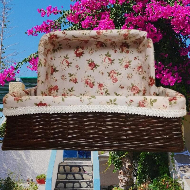 سبد نان حصیری تیناسادات شاپ مستطیل دو تکه قهوه ای پارچه دار تضمین کیفی 20در30در8و 24در17در7