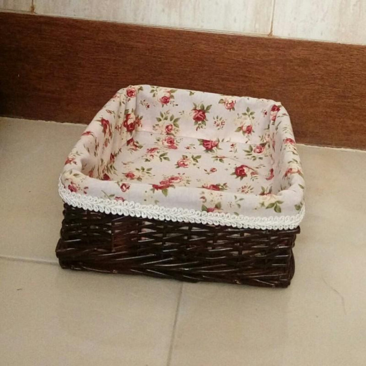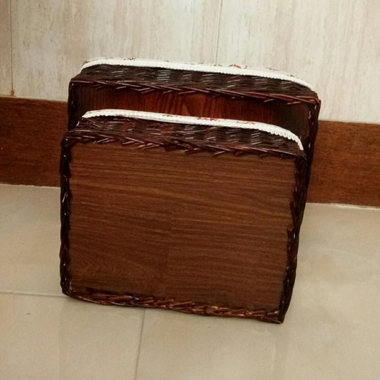 سبد دوسایزی بزرگ وکوچک قهوه ای دارای کف تخته 6میل با رو کش طرح چوب و دارای پارچه ای مرغوب و با کیفیت که در حاشیه ان یراق سفید کارشده است.محصولاتمان از حیث استحکام و کیفیت دارای ضمانت می باشد .