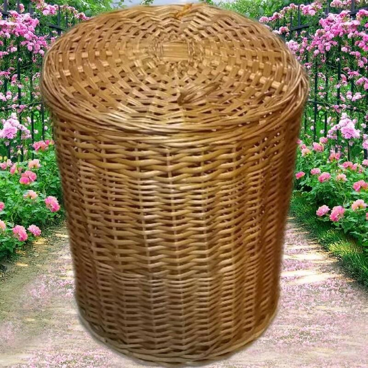 سبدحصیری استوانه دردار متوسط تیناسادات به قطر 35 سانت رنگ کرم تضمین کیفی،(هزینه ارسال با مشتری )