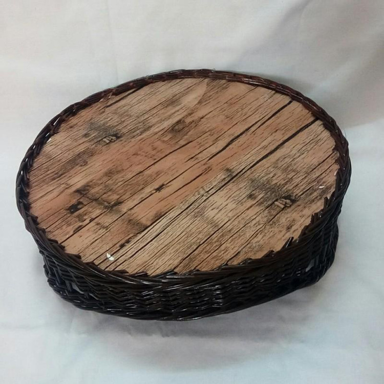 سبدسنتی وحصیری سینی تینا گرد32سانتی تضمین کیفی قهوه ای چوب مرغوب مروارکف نانو
