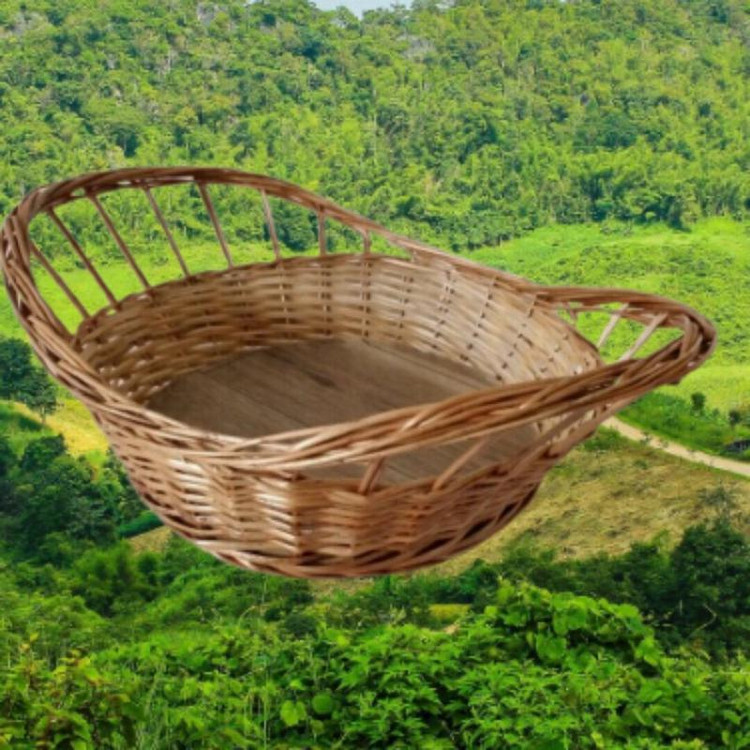 سبدحصیری گرد دسته بغل پنجره ای تیناسادات تضمین کیفی خودرنگ چوب مروار سایز27سانت (80g)