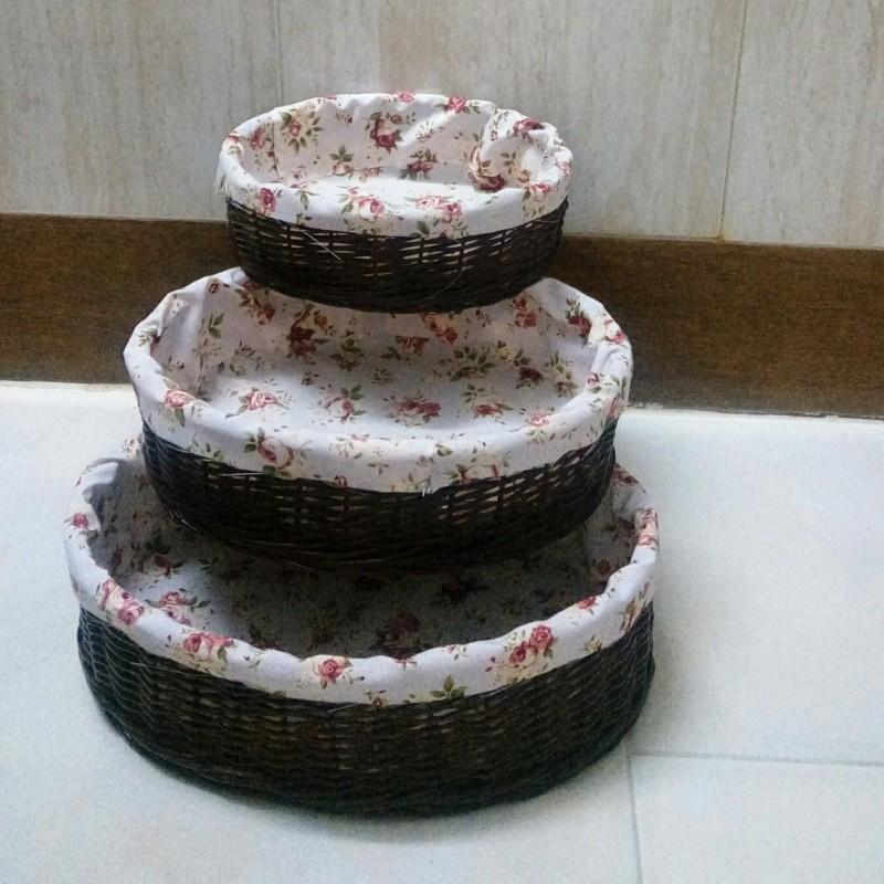 سبد گرد قهوه ای سه سایزی با پارچه_