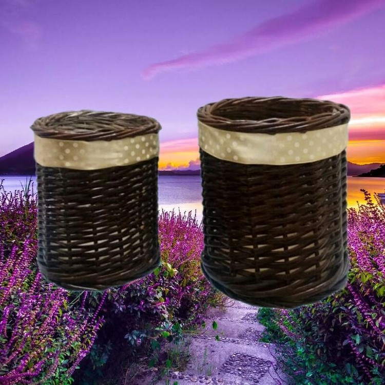 سبد حصیری لیوانی قهوه ای در دوسایز کوچک 10*ارتفاع11سانت و بزرگ 12*ارتفاع13سانت و کف سبدها ازچوب استخوانی 6میل ودارای برچسب طرح چوب ودارای تضمین در کیفیت و استحکام سبدها.اگه غیرازین بودسبدهارو مرجوع کن و سبددیگه ای ازما بگیر.