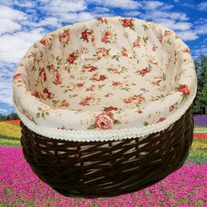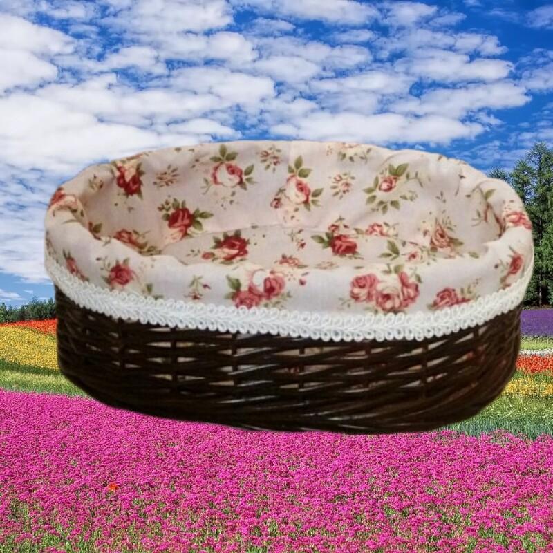 سبد نان حصیری تیناسادات شاپ بیضی بزرگ قهوه ای پارچه دار