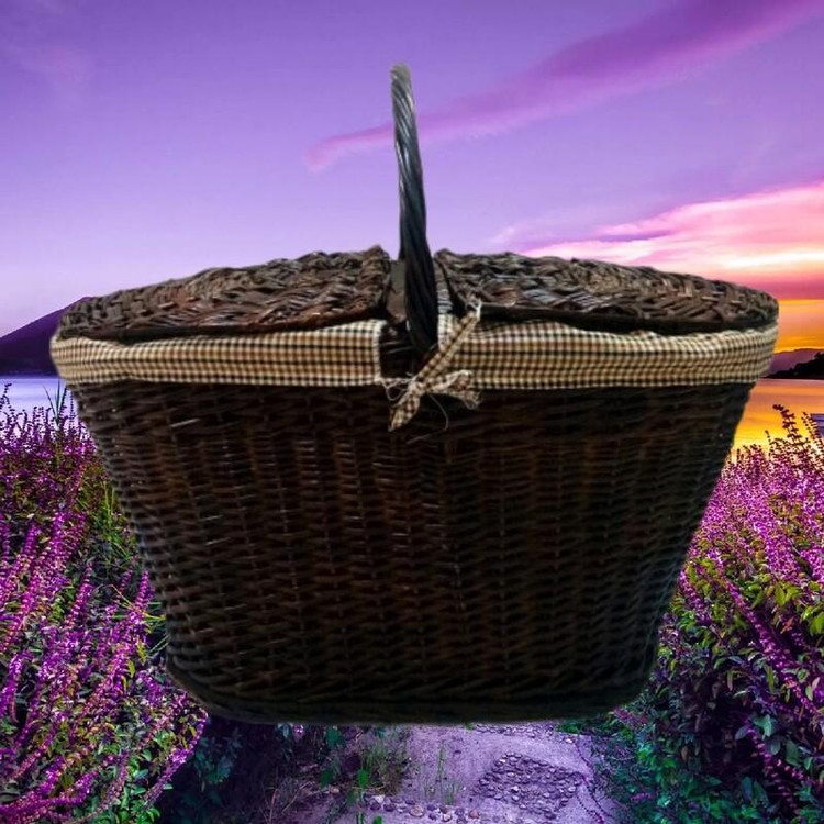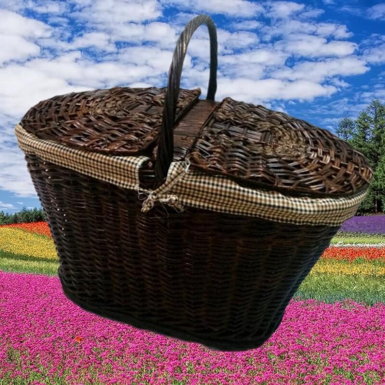 سبد پیک نیک بیضی با پارچه هم چسب چوب خورده یعنی مقاومت سبد رفته بالا وهم رنگ شده