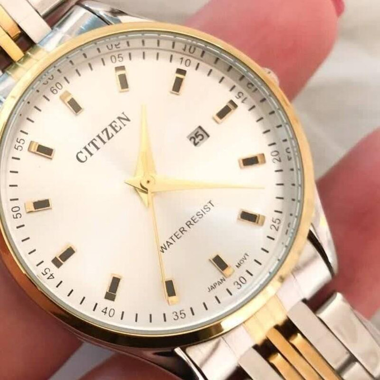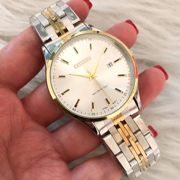 ساعت ستیزن مردانه دارای صفحه گرد با زمینه سفید به قطر 35سانتیمتر و بند استیل دورنگ نقره ای و طلایی و ازهمه مهمتر دارای شش ماه گارانتی موتور و ارسالرایگان هم چاشنی خرید های شماست .