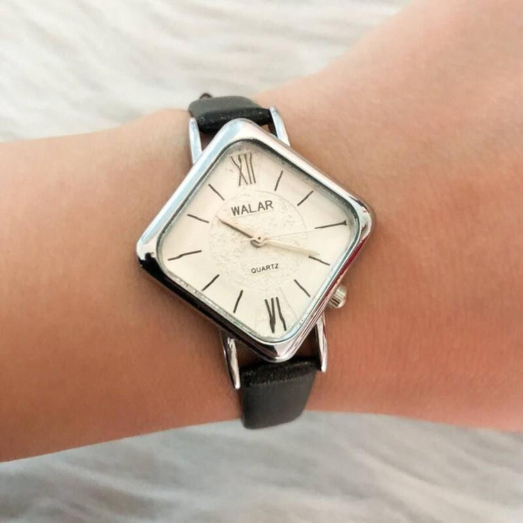 ساعت مچی زنانه و دخترانه والار وارداتی از دبی باکیفیت گارانتی شش ماه برای موتور بند چرم مشکی صفحه لوزی زمینه مشکی همرآه با جعبه ارسالرایگان