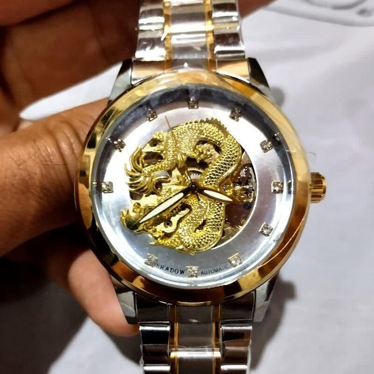 با ابهت جذاب صفحه بزرگ صفحه گرد طلایی رنگ ثابت بند استیل دورنگ نقره ای و طلایی ارسالرایگان لطفاً قبل ثبت سفارش موجودی رو چک کنید.