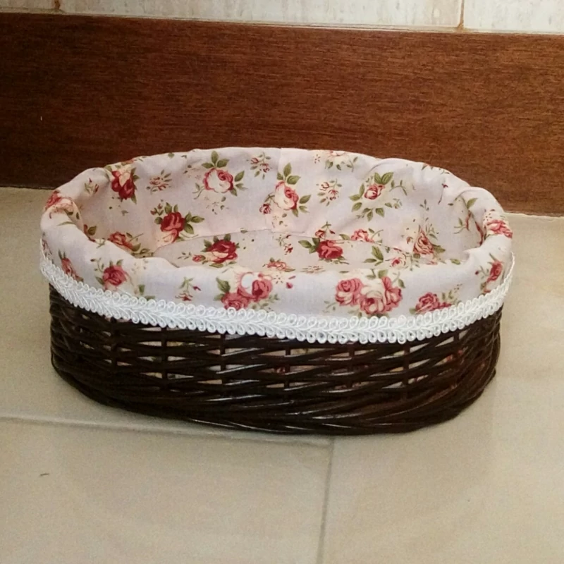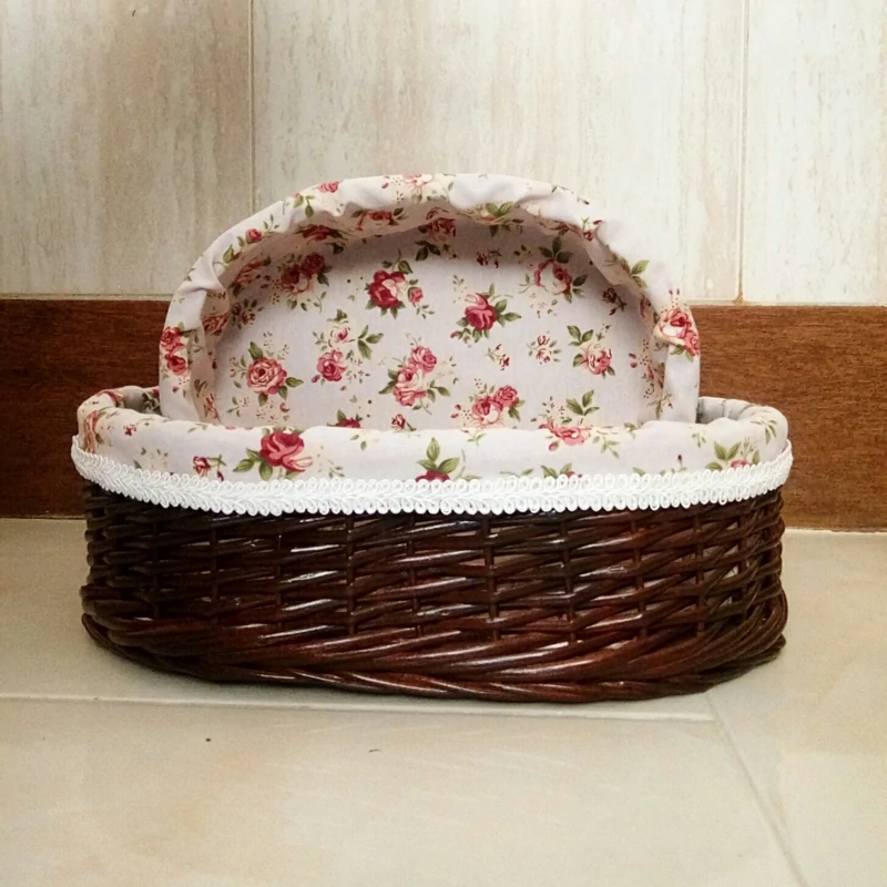 سبد جانونی بیضی دو تکه قهوه ای پارچه دار