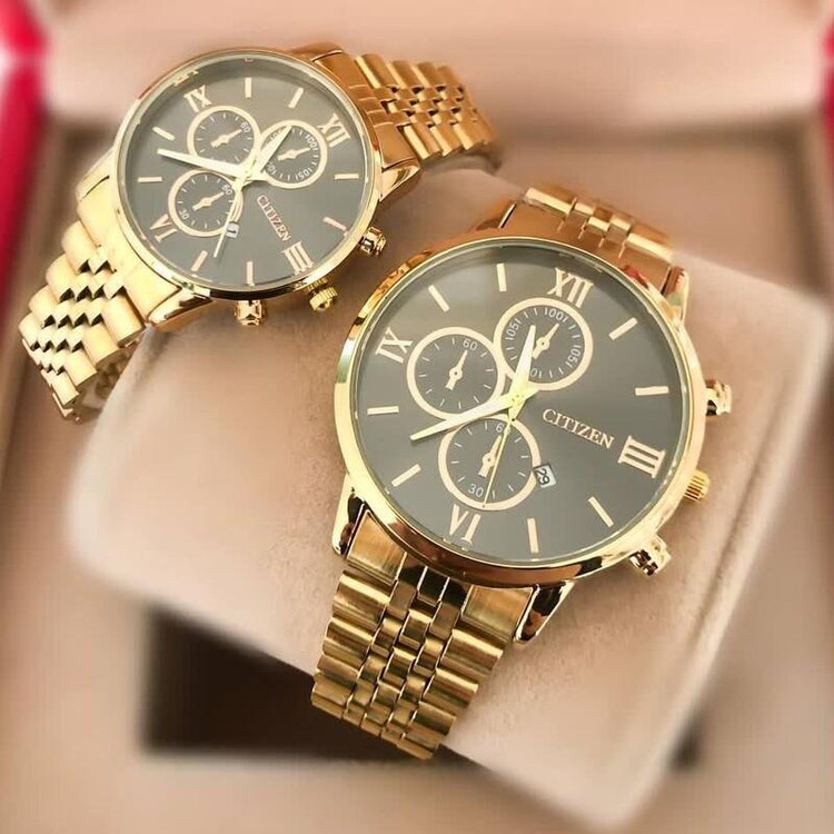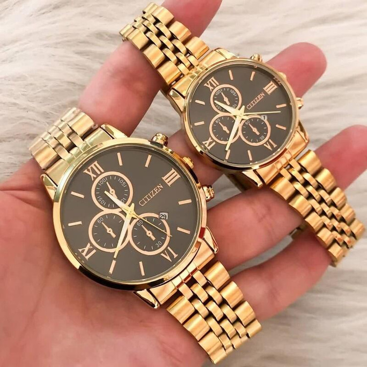 ساعت ست زنانه و مردانه ستیزن زیبا تیناسادات شاپ بند استیل طلایی ارسالرایگان سه موتوره و قطر زنانه 28و مردانه 38میلیمتر